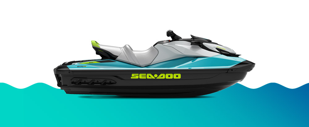 O Sea-Doo GTI SE 130 2026 está equipado com motor 1630 ACE de 130 hp e se apresenta nas cores Azul Teal e Verde Manta.