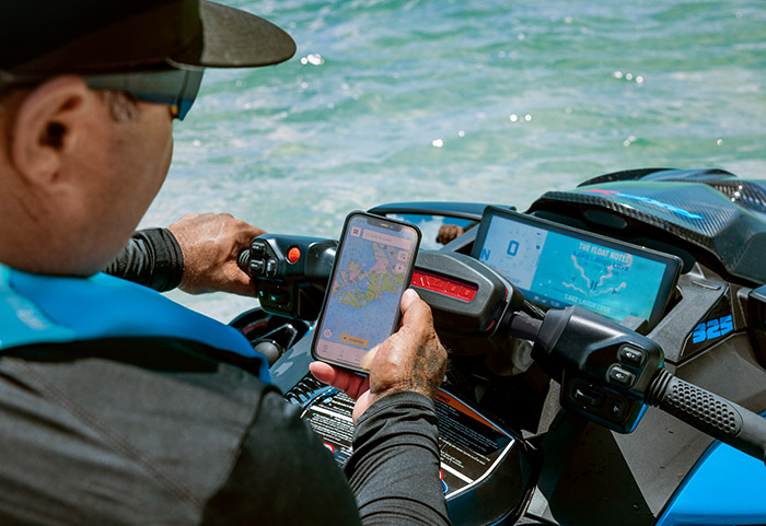 Conta ainda com display touchscreen de 10,25”, estabilizadores traseiros ajustáveis, sistema de freio e reverso (iBR) e sistema de áudio Premium BRP.