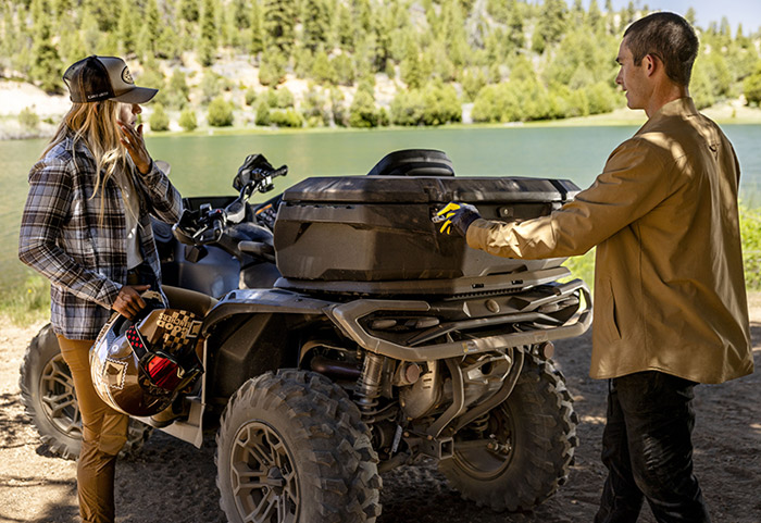 Equipado com amortecedores dianteiros e traseiro Fox 1.5 Podium QS3, direção dinâmica assistida de modo triplo (DPS), guincho com capacidade para 1.588 kg (3.500 lb), diferencial dianteiro autoblocante Visco-4Lok, para-choques dianteiros e traseiros reforçados, rodas de alumínio fundido de 14 polegadas com pneus Maxxis Bighorn 2.0 de 27 polegadas, defletores de vento no guidão, mostrador digital multifunção de 7,6 polegadas e muito mais.